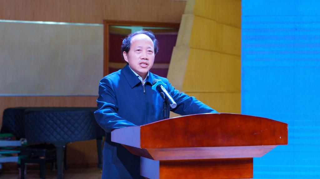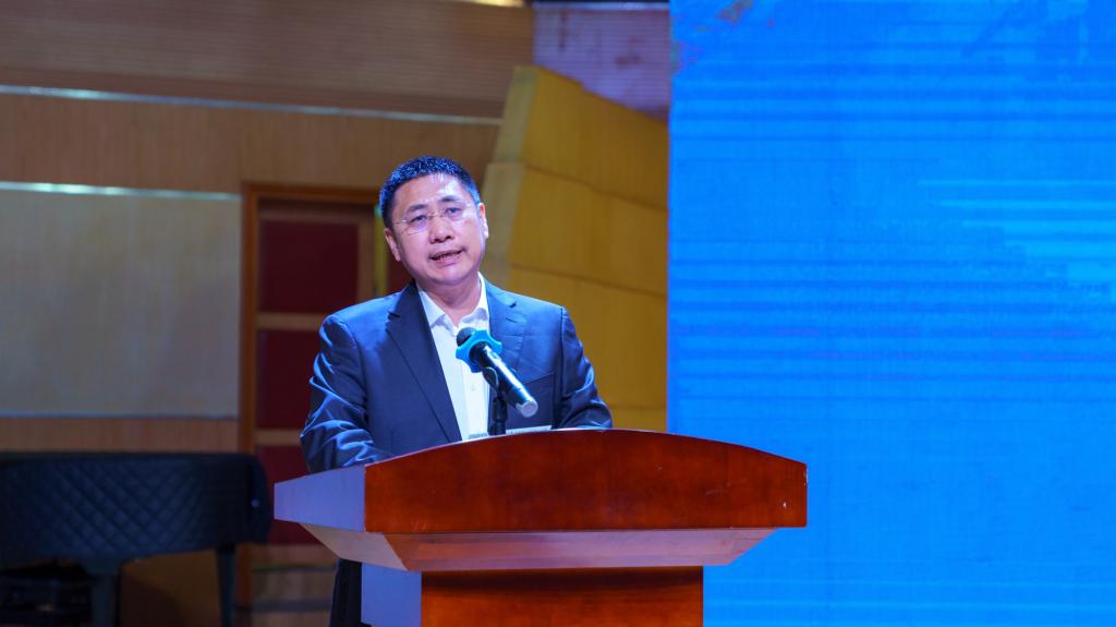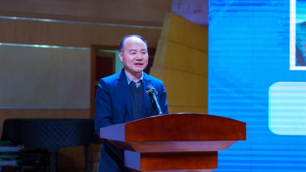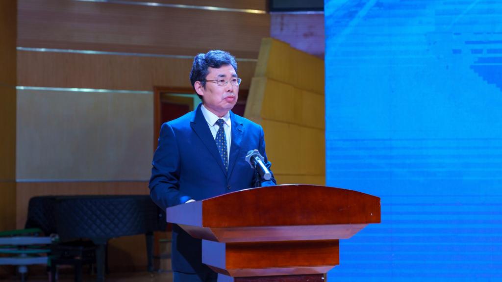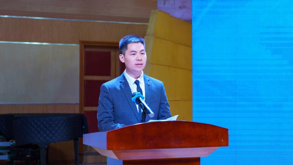 正大国际科学研究院院长何新桥代表捐款单位和个人发表讲话,希望同学们能继承陈家镛院士严谨治学、科技报国的精神,励志勤学,报效祖国。