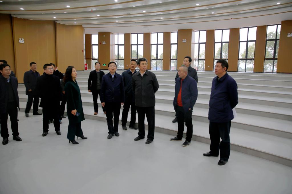 校领导察看实验实训中心学术报告厅内部装修情况