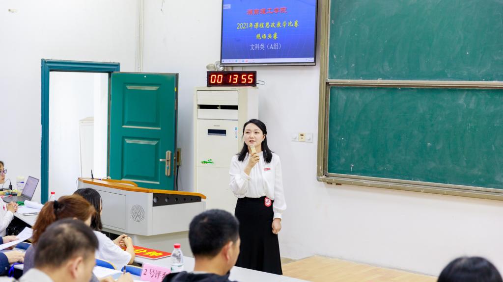 校园网讯 5月25日下午,由教务处教师教学发展中心主办的2021年课程思政教学比赛在15号教学楼顺利进行,校长宁立伟、副校长徐小立出席,校督导团成员、机关职能部门负责人及各学院师生代表200余人参加了此次活动。据了解,现场决赛分文科类、理工类、外语经管类3组同时进行。比赛组委会聘请了校内21名专家担任评委,对选手现场说课展示评分。参赛教师在20分钟内介绍了其教学设计的思路和内容,展示了课堂教学并回答了专家提问。参赛选手结合自己的专业特色,深入挖掘课程中蕴含的思政元素,把思想政治教育有机融入到课堂教学中,逻辑清晰、语言流畅,教学内容熟练,教学方法得当,展示了各具特色的教学设计和教学风采。