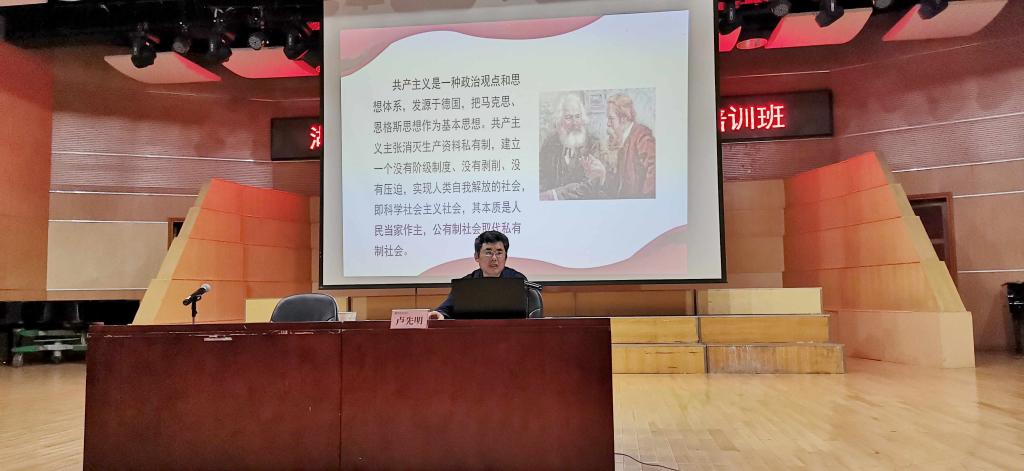 党委书记卢先明以《坚守初心、勇担使命》为主题给培训班学员上党课