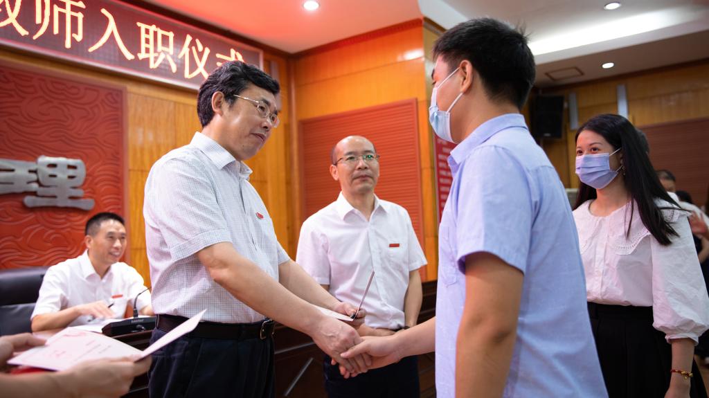 党委书记卢先明希望新教师学习好、领会好、落实好习近平总书记关于教育的重要论述,争做“四有”好老师