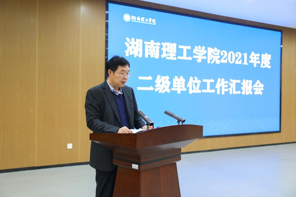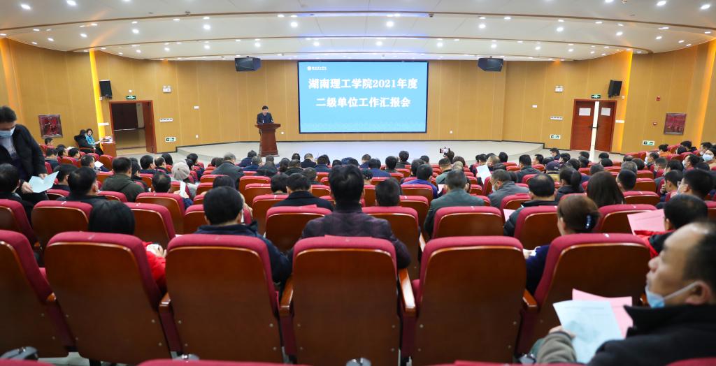 1月11日,学校在实验实训楼学术报告厅召开2021年度二级单位年终工作汇报会