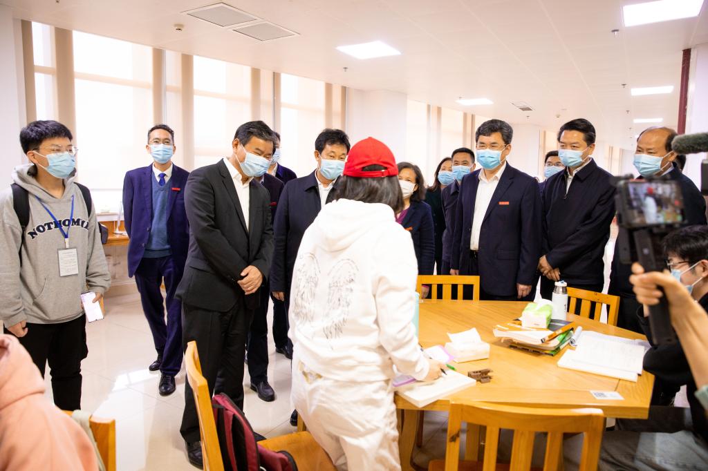 面对近期严峻疫情防控形势,他要求,学校要高度重视、严格落实,压紧压实各方责任,落实落细属地疫情防控各项措施,坚决筑牢疫情防控屏障,保障各项工作体系稳定有序高效运行,确保师生生命健康,校园安全和教育稳定。