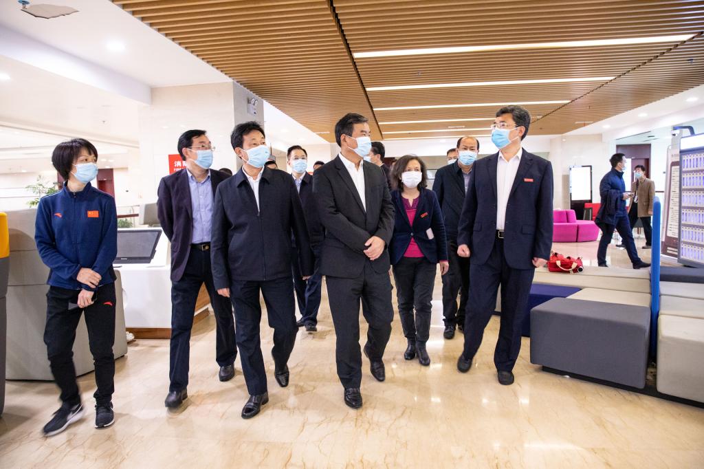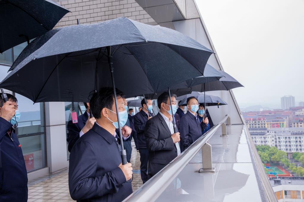 在校党委书记卢先明、校长宁立伟等校领导陪同下,何报翔一行在图书馆远眺校园全景,对学校建设提出殷切期待