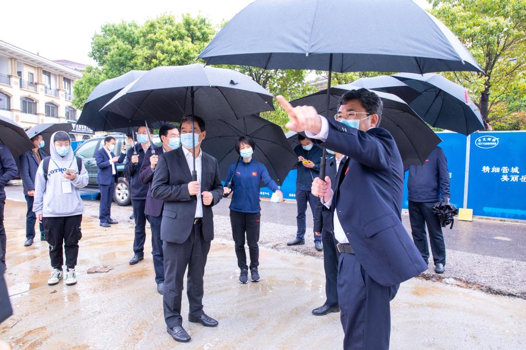 校园网讯 4月15日下午,湖南省人民政府副省长何报翔一行来校考察调研,先后深入图书馆、省运会和省大运会比赛场馆、新田径场、音乐学院等地,实地察看学校项目建设情况,听取学校“十四五”基础设施建设规划汇报,了解学校省大运会筹备情况和教育事业发展状况。校党委书记卢先明、校长宁立伟等校领导陪同调研。