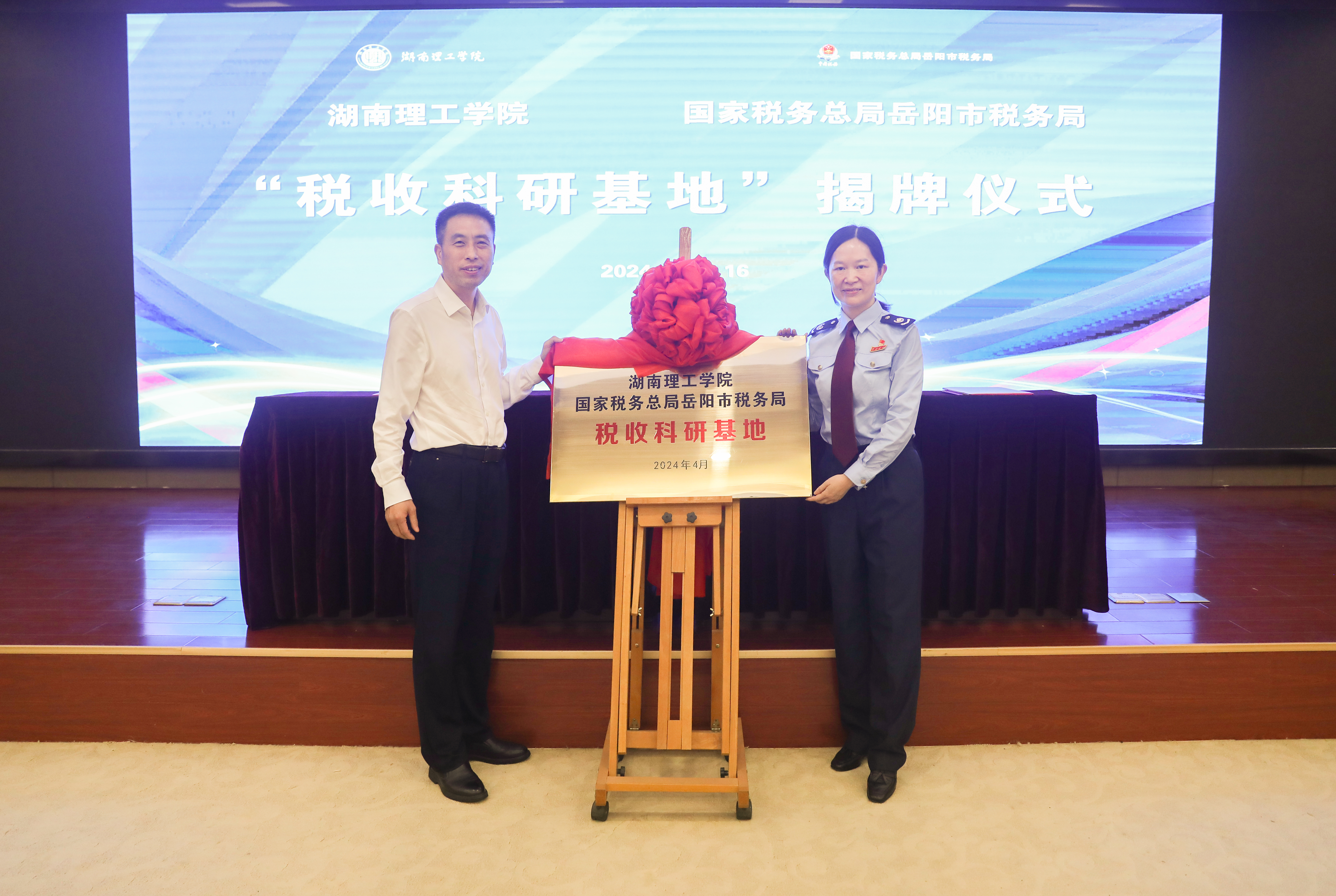会后,张国云和李莉一起为“税收科研基地”揭牌。副校长汤小红与岳阳市税务局党委委员、总会计师陈小伟共同签署《yl8cc永利官网岳阳市税务局战略合作框架协议》。
