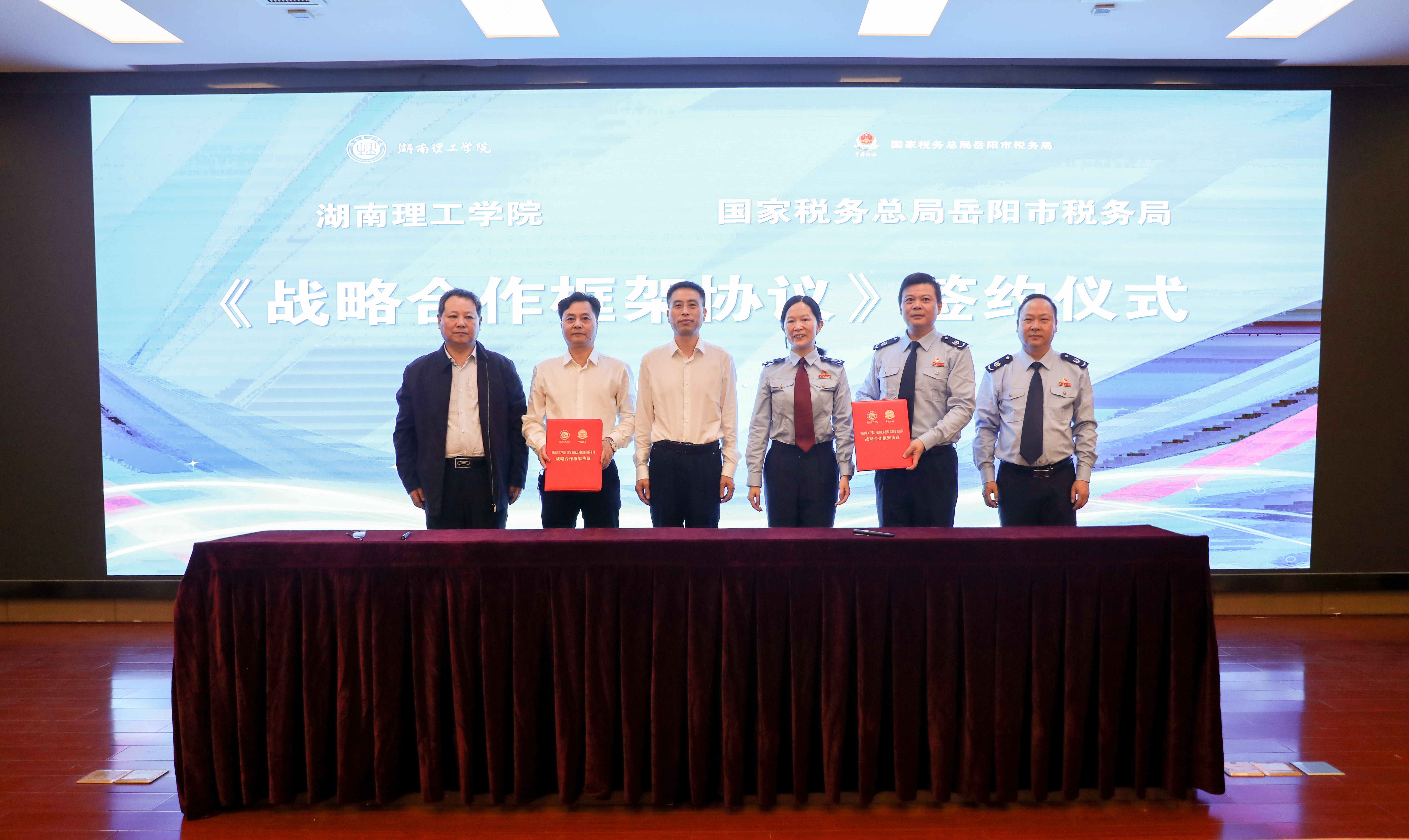 副校长汤小红与岳阳市税务局党委委员、总会计师陈小伟签署《yl8cc永利官网岳阳市税务局签订战略合作框协议》