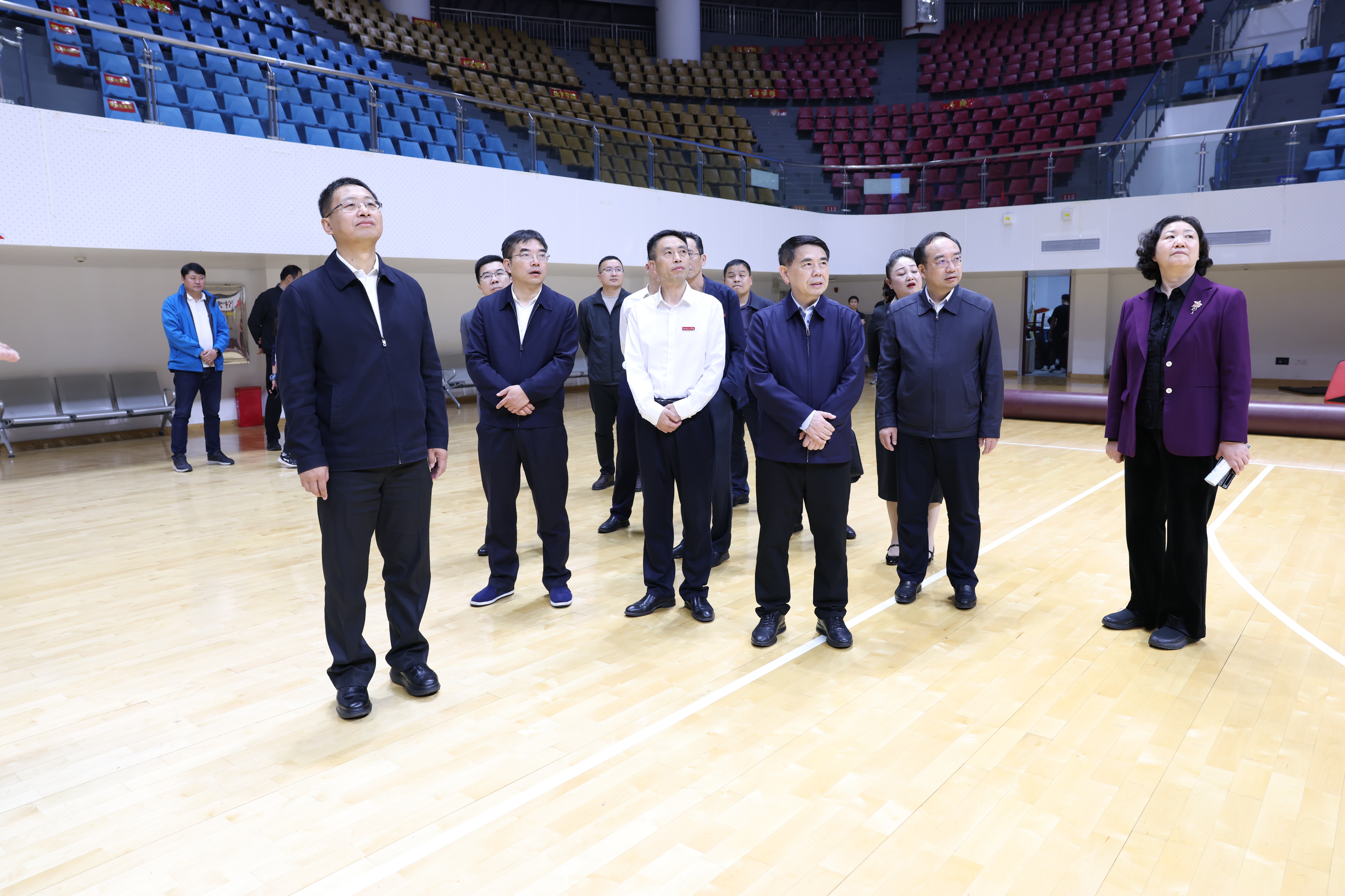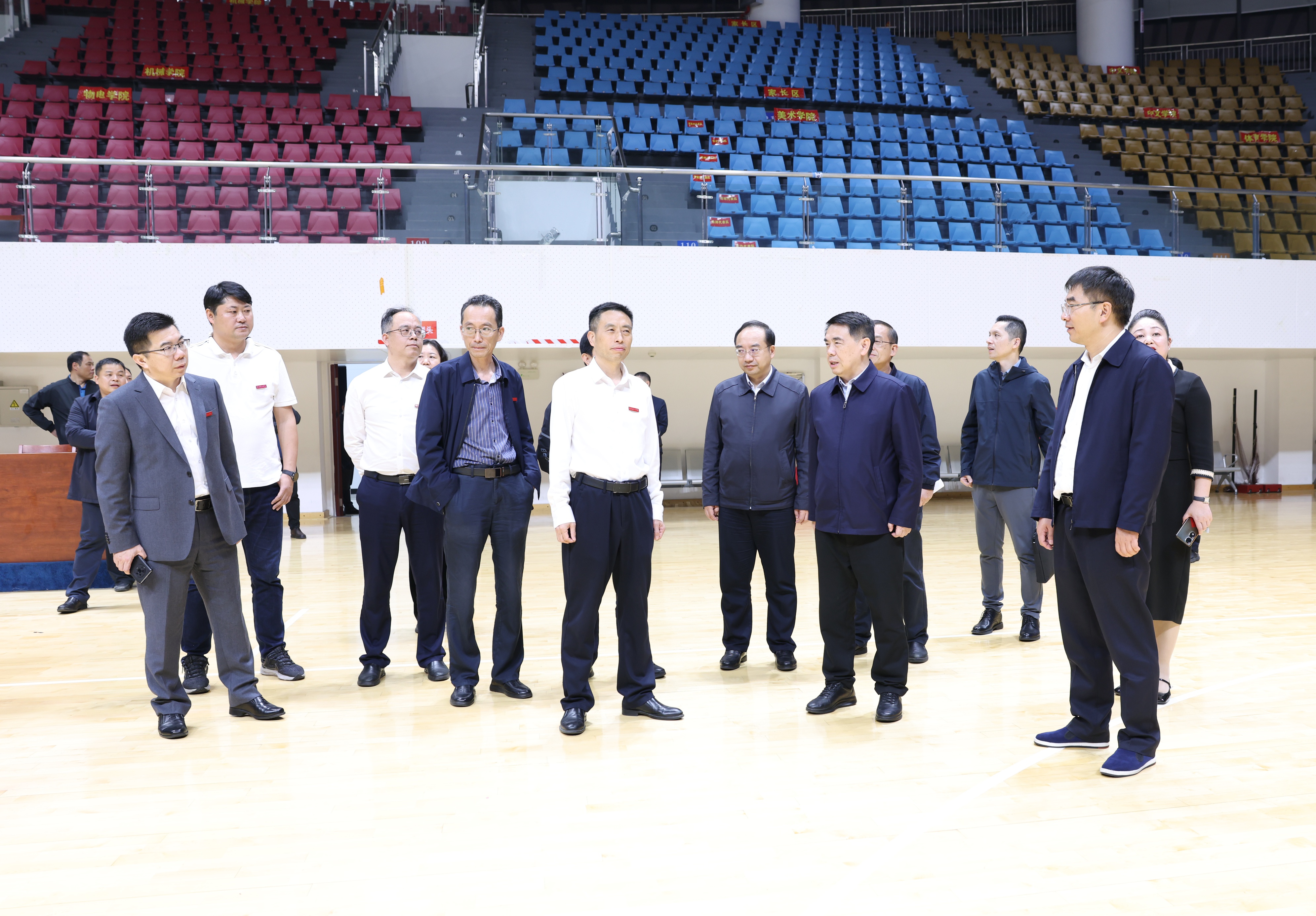在体育馆,谢卫江、蒋涤非一行检查了篮球场地建设改造情况,现场听取工作人员的情况汇报。在随后举行的三大球运动会开闭幕式筹备情况汇报会上,谢卫江、蒋涤非听取了相关情况汇报。