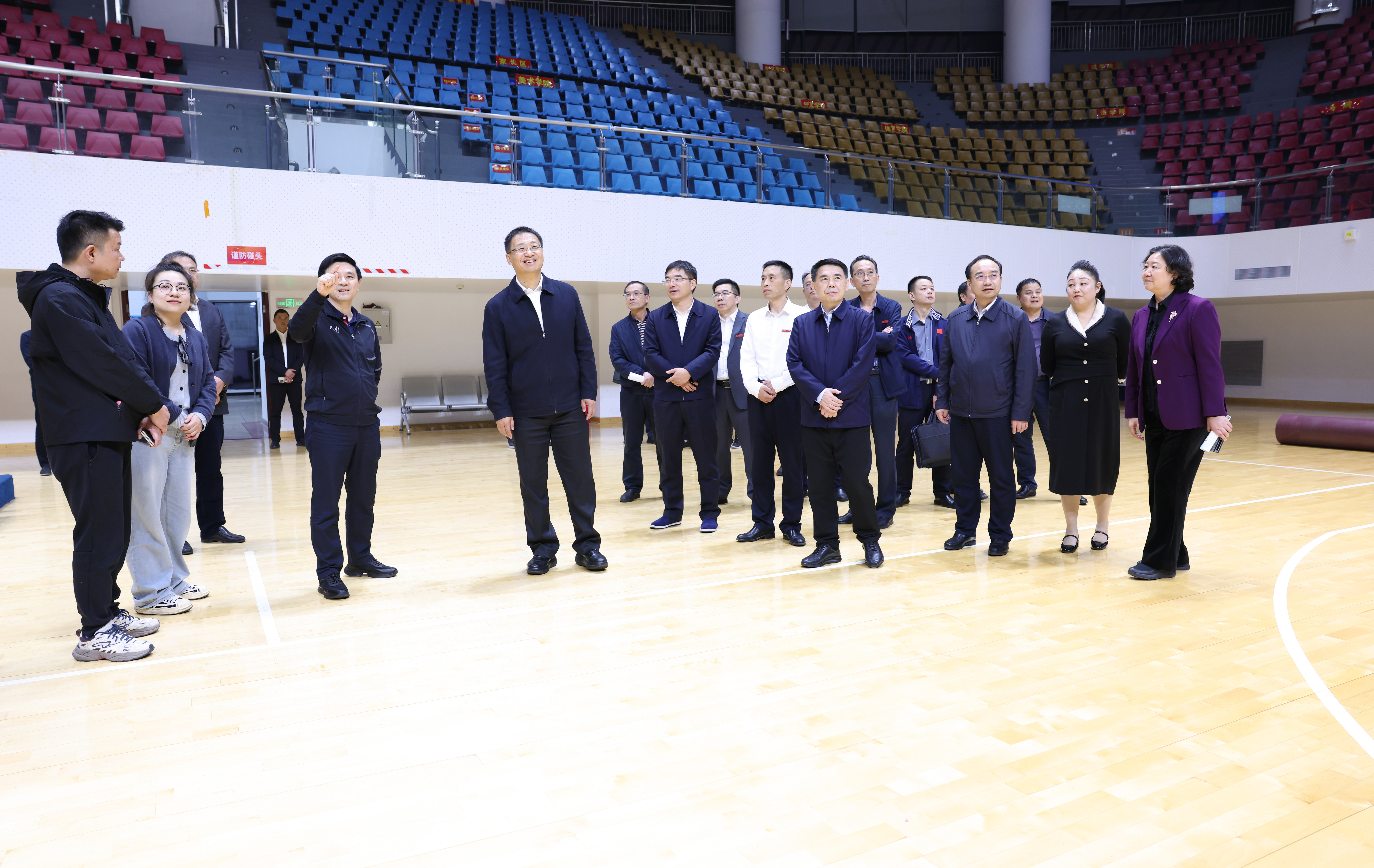 湖南省人民政府副秘书长陈旌,湖南省体育局党组书记熊倪,湖南省体育局副局长张连标,岳阳市副市长张世愚,岳阳市政协副主席范泽容,学校党委书记张国云,副校长徐振祥、丁跃浇、刘长辉陪同调研。