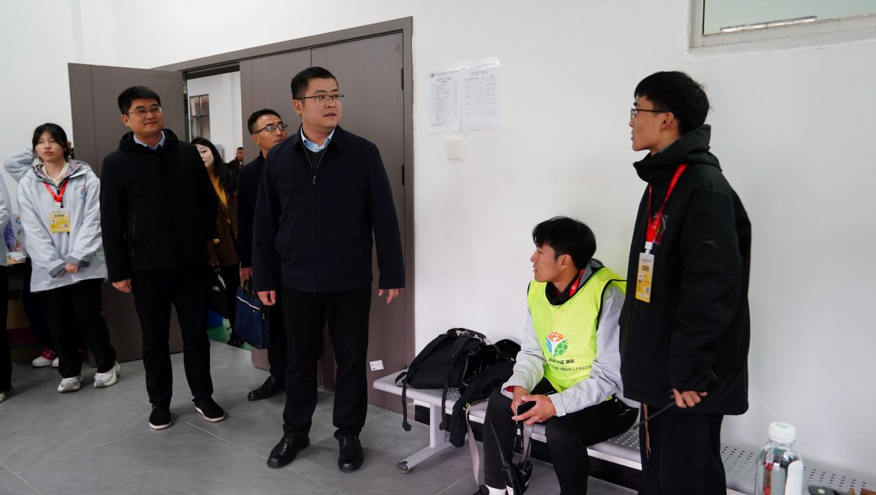 邱帅萍一行还参观了学校办学成果展,考察调研了全国第一届青少年三大球运动会的比赛场地,慰问了赛会志愿者。