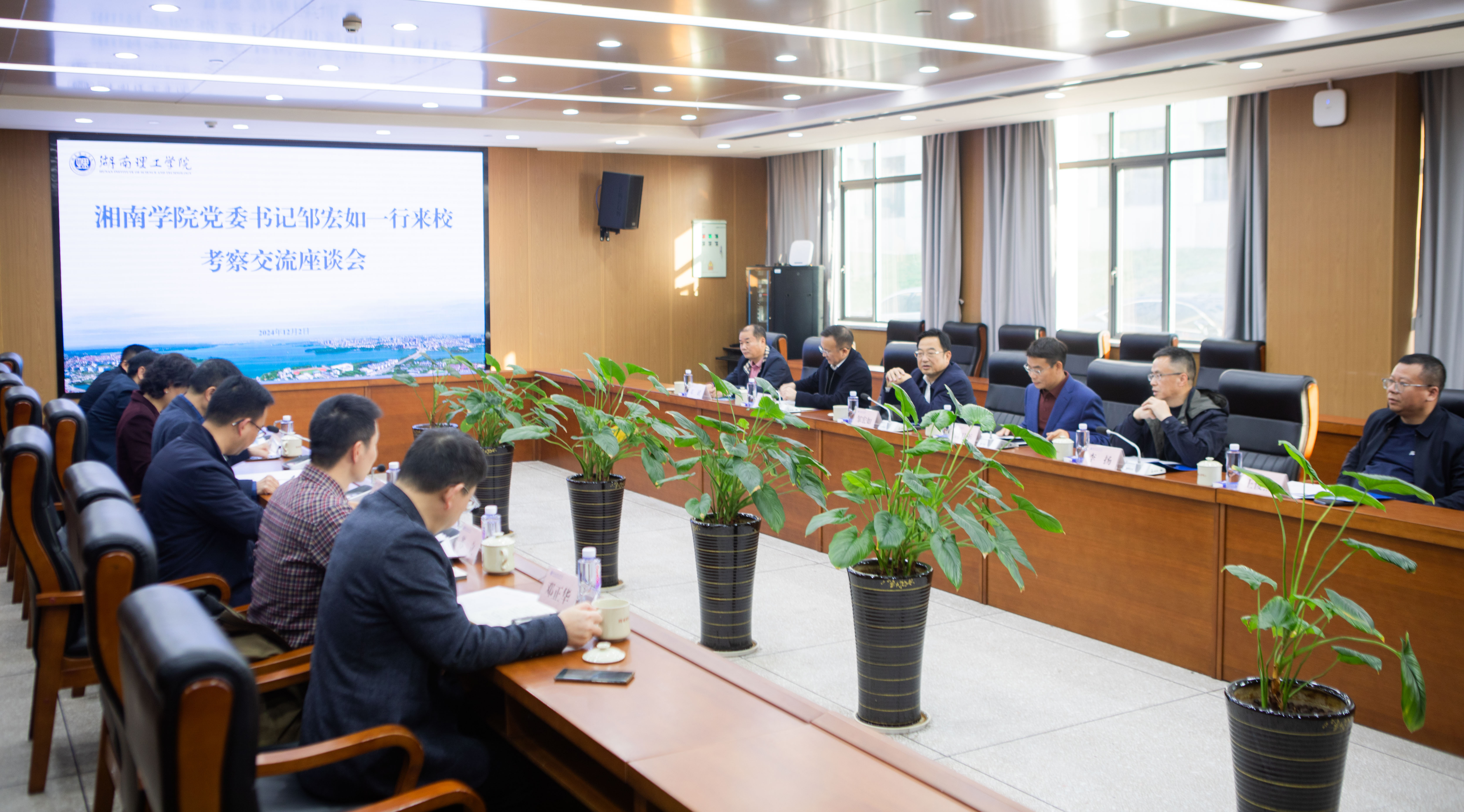 校园网讯 12月2日下午,湘南学院党委书记邹宏如一行来校,就高层次人才引进、科技成果转化及办学治校等方面展开交流。