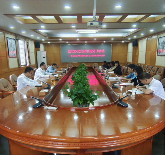 9月26日上午,yl8cc永利官网组织开展了主题党日活动,专题学习了习近平总书记对新时代办公厅工作作出的重要指示精神,研究部署贯彻落实工作。本次会议由党政办主任、支部书记陈超文主持,支部全体党员参加。